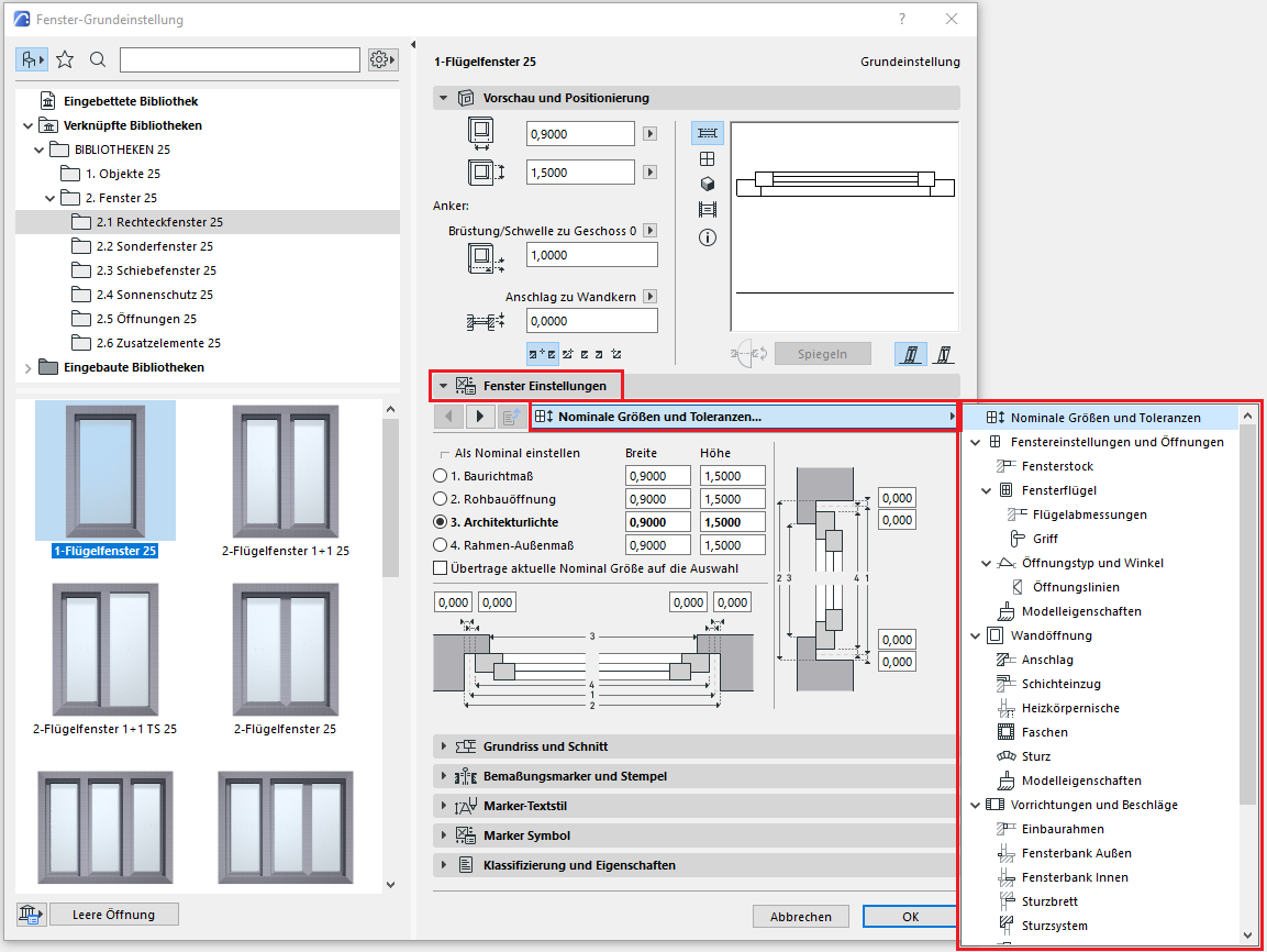 Die grundsätzliche Modellierung eines Fensters in ARCHICAD unterscheidet sich nicht in den verschiedenen Planungsphasen.