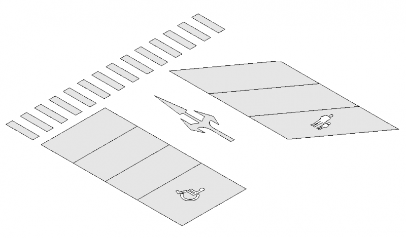 Suchbegriffe: Parken, Parkplatz, Stellplatz, Stellplätze, Parkplatz, Abstell, Befestigte, Fläche, Markierung, Symbol, Behinderte, Streifen, Auss, Zebrastreifen, Pfeil, Bordstein, Rammschutz