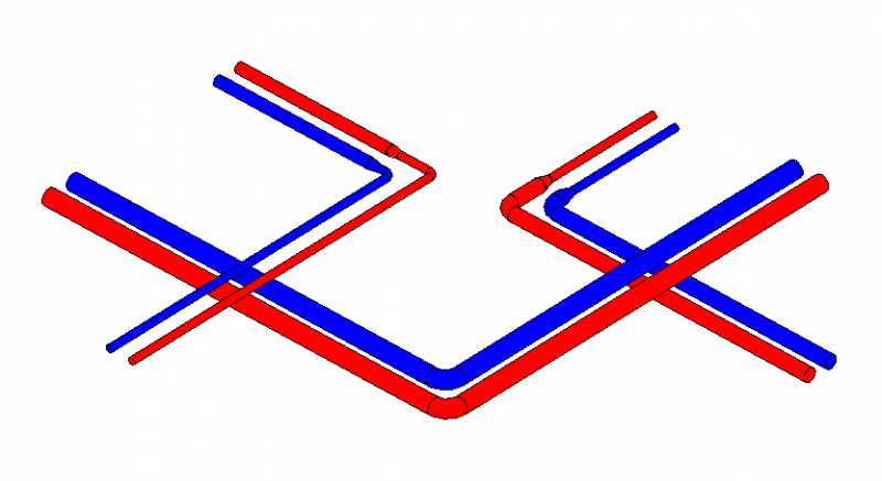 Es kann das Routing für Rohre in einem vorhandenen Rohrsystem angepasst werden. Weitere Informationen zur Änderung von Routing-Lösungen finden sie unter Autodesk Hinweis