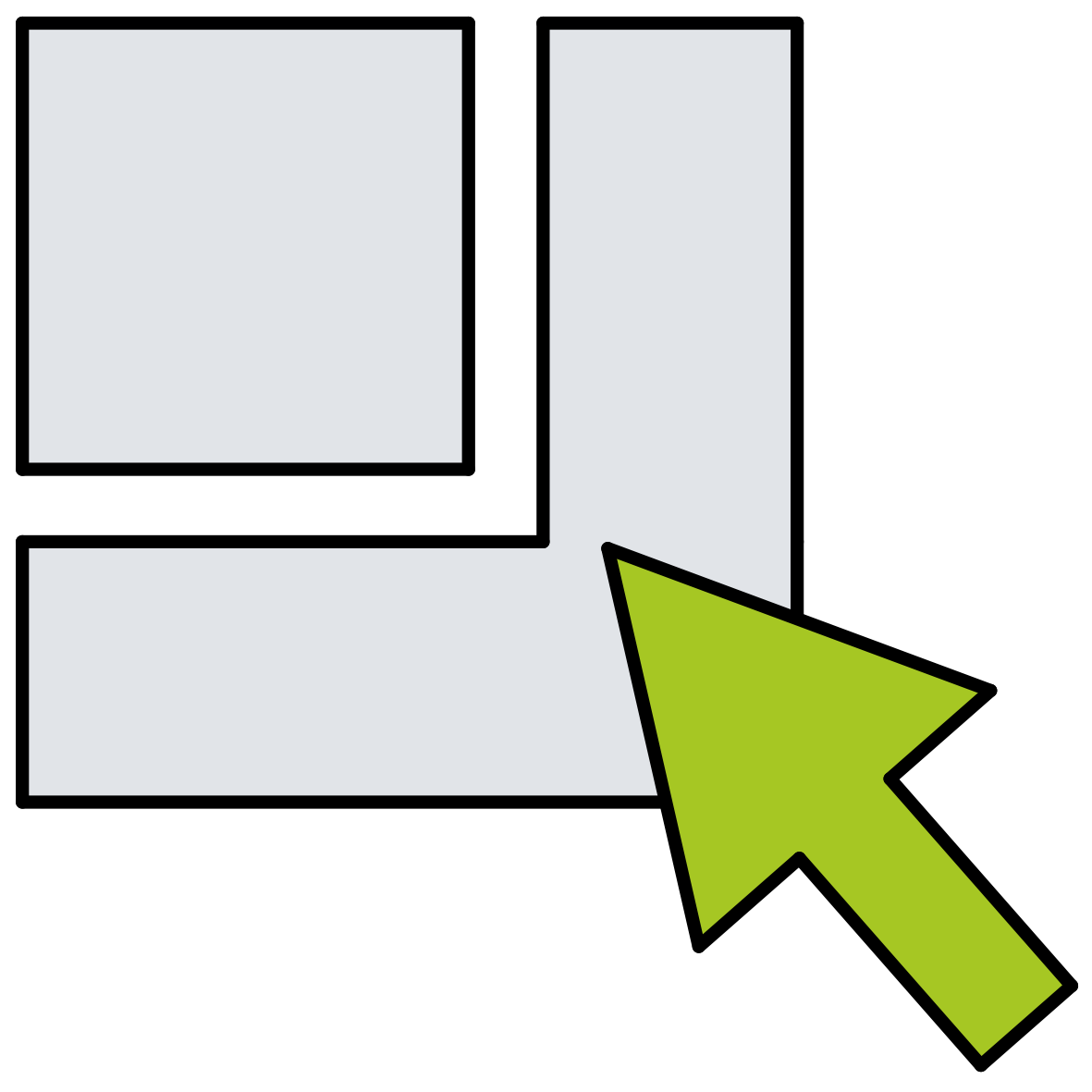 - Bei unregelmäßig geformten Räumen erfolgt die Platzierung prinzipiell in gleicher Weise nach 2 Achsen. Elemente, welche dadurch "außerhalb" des Raumes platziert werden würden, werden nicht platziert.