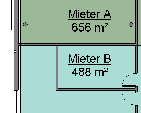Eine manuelle, sprich nicht verbundene, Platzierung ist dennoch möglich (Raumbegrenzungen in den Bauelementen oder den Raumtrennlinien muss deaktiviert werden) - in diesem Fall wird der Raum jedoch nicht mehr auf Befehl automatisch aktualisiert, und es können Fehler in der Flächenauswertung auftreten.
