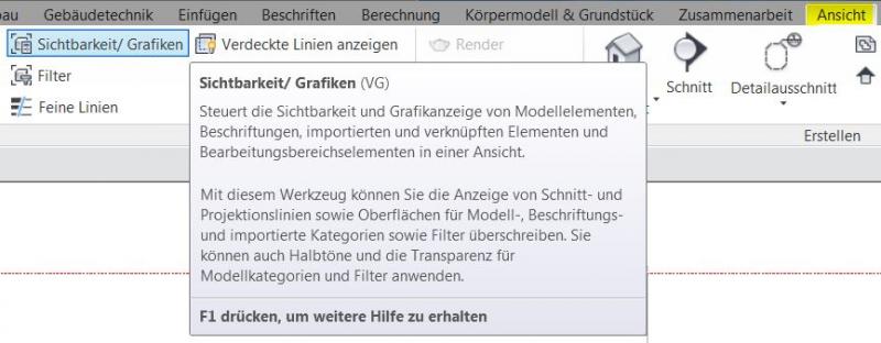 Die Sichtbarkeit und das Erscheinungsbild der Modelllinien kann in jeder Sicht individuell im Menü Sichtbarkeit/Grafiken gesteuert werden.