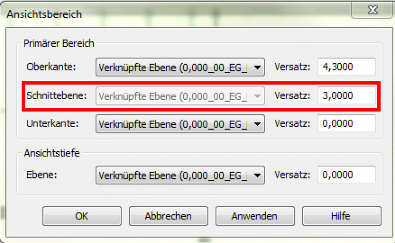 6. Die Darstellung der Podest-Kanten erfolgt über Linienstil-Überschreibung. Hierzu die Schnittebene temporär über das Podest setzen