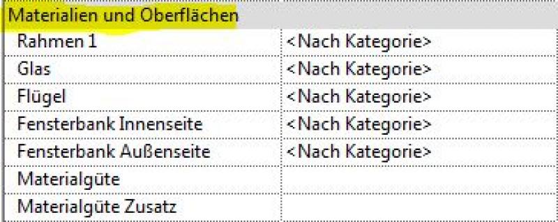 Die Eingabe von Materialien erfolgt über die entsprechenden Parameter im Eigenschaftenfenster: