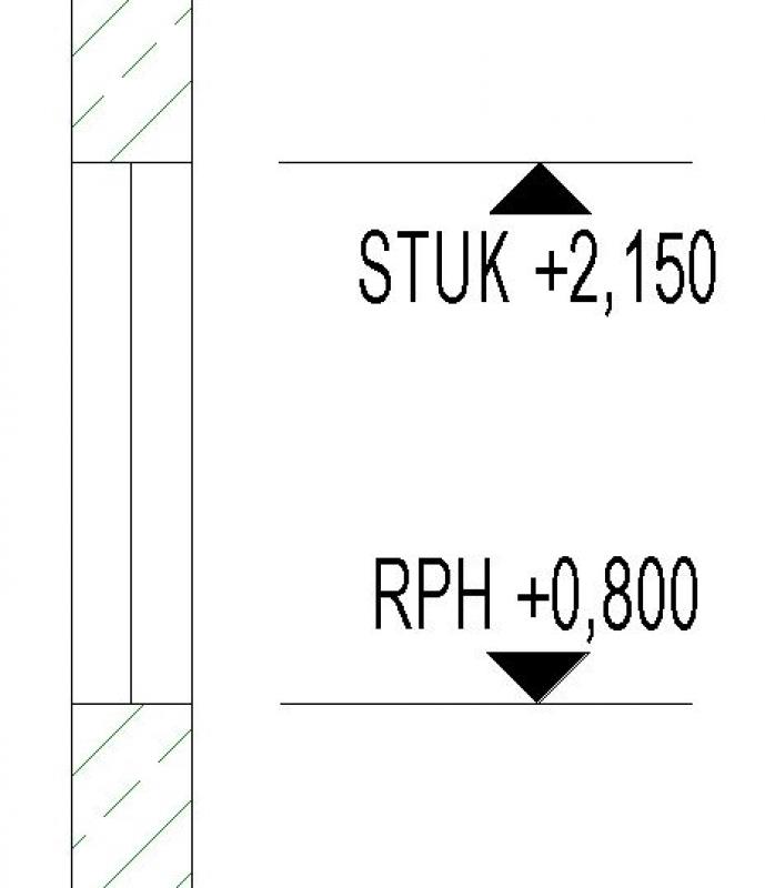 Bei Verwendung von Bezugshöhen zum ±0,00 des Gebäudes können diese im Grundriss und im Schnitt mit dem Befehl >Beschriften >Höhenkote erstellt werden. Dabei ist aber darauf zu achten, dass die richtige Höhe auf der Fenster-Brüstung gewählt wird (bei fertigen Parapethöhen sollte die Oberkante des Fensterbretts gewählt werden). Zudem ist die Einstellung >Höhenwerte anzeigen für die Auswahl der richtigen Höhe in der Optionsleiste zu berücksichtigen: Zur Auswahl stehen: Obere Höhe / Untere Höhe / Obere und untere Höhe