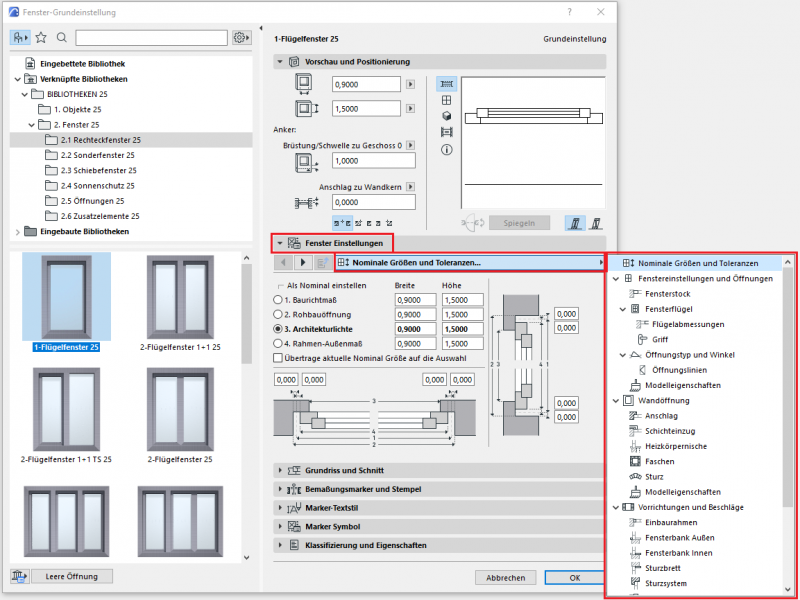 Die grundsätzliche Modellierung eines Fensters in ARCHICAD unterscheidet sich nicht in den verschiedenen Planungsphasen.