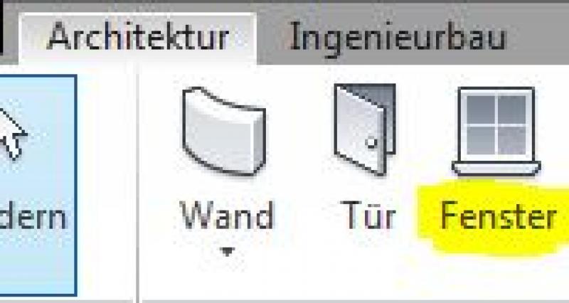 Fenster zählen in Revit zur gleichnamigen Kategorie und werden mit dem Befehl >Architektur >Fenster erstellt. Da sie nicht zur Palette der Systemfamilien sondern zu den sogenannten externen (='ladbaren') Familien gehören, müssen sie je nach Bedarf mit dem Befehl >Einfügen >Familie laden aus dem Revit-Content geladen werden: