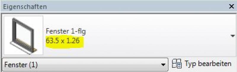 Im Eigenschaftenfenster kann der Typ ausgewählt werden, der üblicherweise für die Fenster-Größe mittels oben beschriebener Typ-Parameter verantwortlich ist: