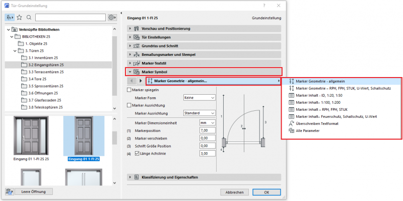 Für die grundsätzliche Verwendung des Tür-Werkzeuges verweisen wir auf die Basisdokumentation von Graphisoft im Help-Center.