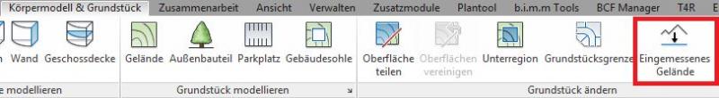 Der Aushub wird in Revit durch die Differenz 2er Topografien (Bestand und Neu) berechnet und mit dem Befehl >Körpermodell & Grundstück, >Eingemessenes Geländer durchgeführt:Eine weiterführende Anleitung zu Geländeaushub kann im Artikel Topografie erstellen und bearbeiten nachgelesen werden.