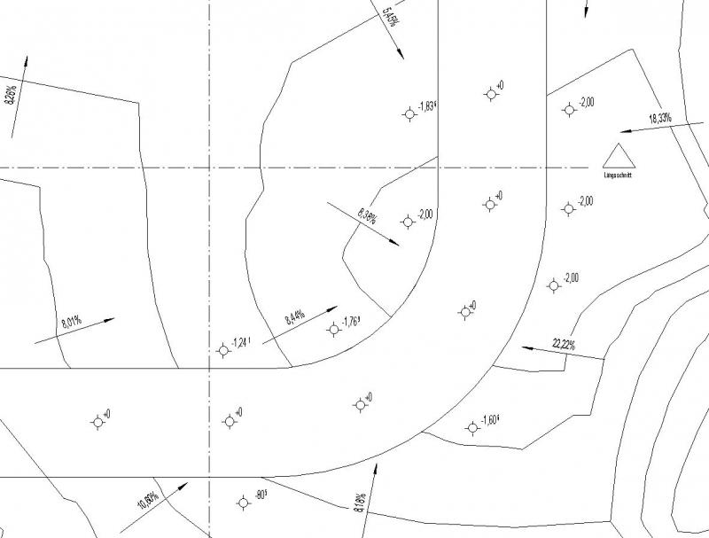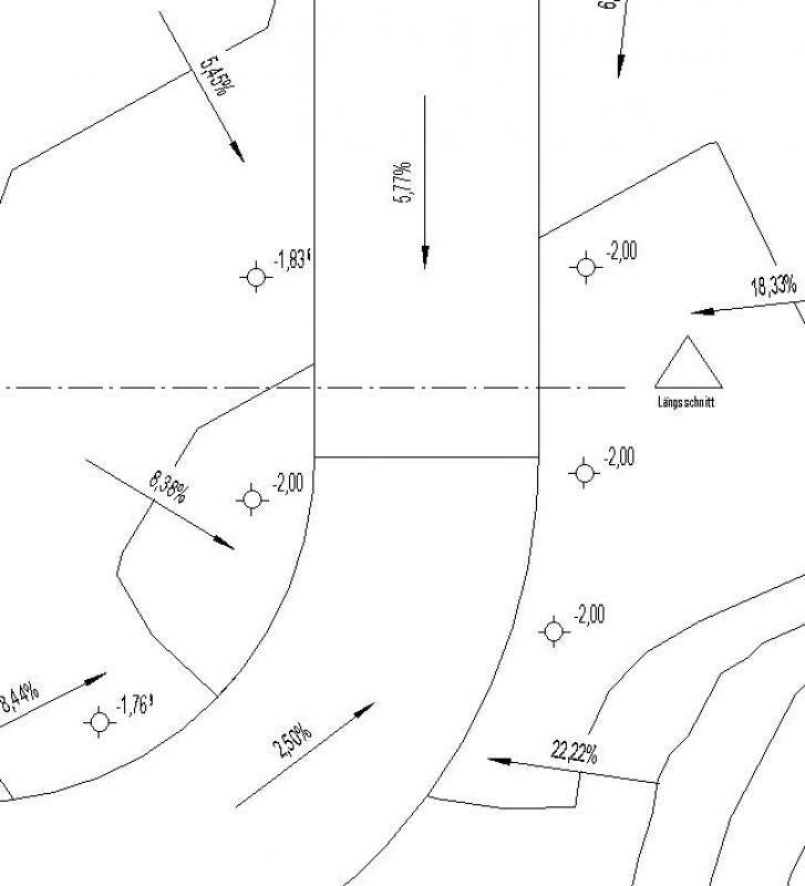 In dieser Phase werden die Hauptentwasserungspunkte mit Höhenkoten und Gefälleangaben (Neigungen) versehen.