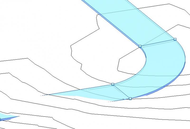 - Ergebnis: ist einerseits eine der Topografie angepasster Straßenverlauf (oder sonstigen befestigten Fläche) und andererseits eine dem Straßenverlauf (oder sonstigen befestigten Fläche) angepasste Topografie: