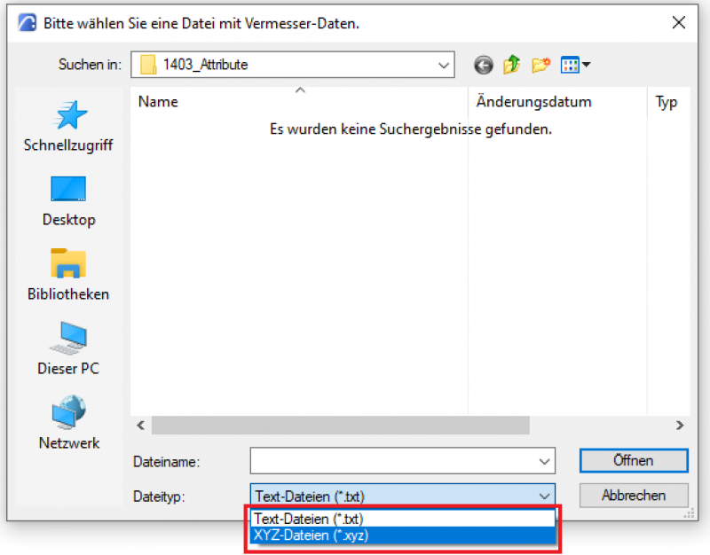 Wählen Sie den passenden Dateityp aus und öffnen Sie die Datei.