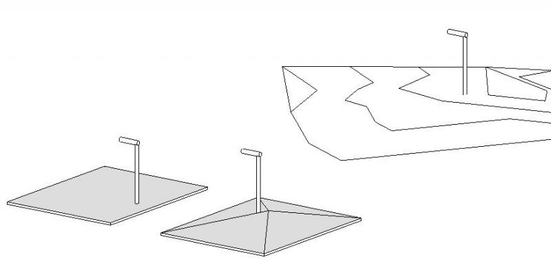Als Untergrund (=Basisbauteil) können die Kategorien >Geschossdecken oder >Topografie herangezogen werden, wobei die Platzierung sowohl in einem Grundriss als auch in einer 3D-Ansicht möglich ist.Die Leuchte wird in Abhängigkeit der Oberfläche des Basisbauteils bzw. der in der Optionsleiste einzustellenden Ebene auf einer entsprechenden Höhe platziert:
