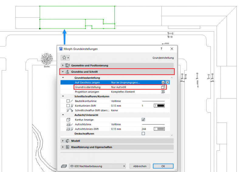 Die Systematik in ARCHICAD zur Beschriftung und Bemaßng von Nachbarbebauungen in den Grundrissen, Schnitten und Ansichten erfolgt (bis auf individuelle Texte) immer elementbezogen (adaptiv).