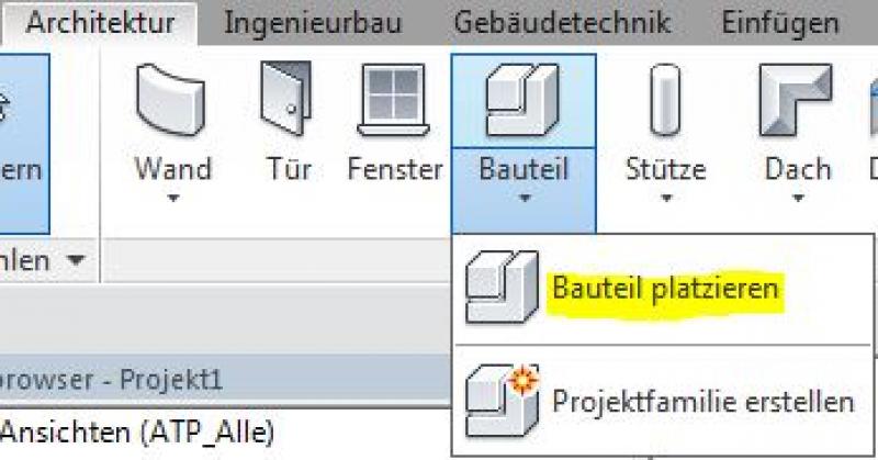 Zum Platzieren dieser fertigen Familien verwendet man den Befehl >Architektur >Bauteil: