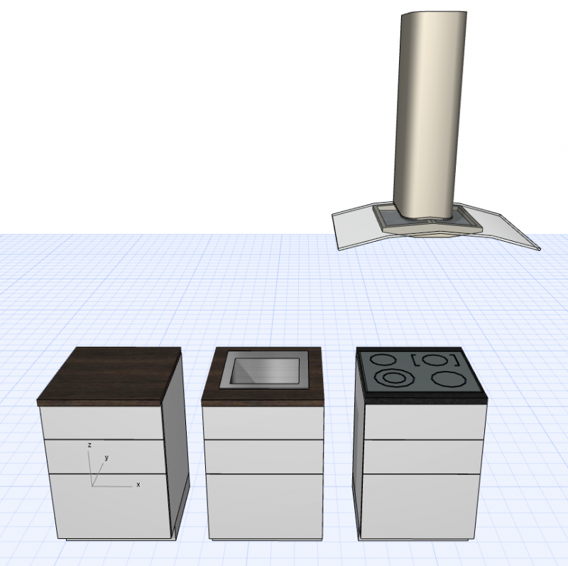 Dieser Artikel befasst sich vordergründig mit der Erstellung von Küchenblock-Einzelkomponenten wie Unter- und Oberschränken, Backöfen, Spülmaschinen, Arbeitsplatten, Spülbecken, Kochplatten etc. und deren Block-Kombinationen.
