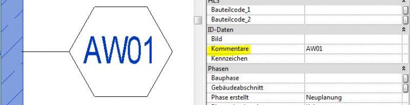 Beispiel für das Bauteil Wand: "AW01" oder "IW01" (für Außenwand 01 oder Innenwand 01)