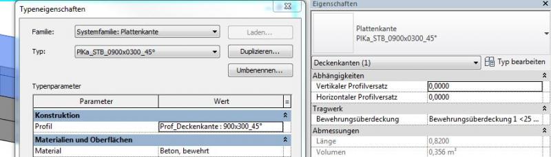 Plattenkanten werden mit dem Befehl >Ingenieurbau >Fundament >Platte >Geschossdecke: Plattenkante erstellt und dienen der speziellen, bspw. im Falle von Vouten schräg auszuführenden Kanten von Fundamentplatten. Unterschiedliche Typen von Plattenkanten können mit >Typ bearbeiten, >Duplizieren und Zuordnung eines Plattenkanten-Profils erzeugt werden. Die Familien-Vorlagendatei >M_Profil ist für die Erstellung von neuen Plattenkanten-Profilen vorgesehen: