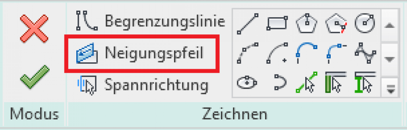 - Eine einseitige Neigung der Fundamentplatten wird mittels >Neigungspfeil bewerkstelligt: Eine entsprechende Anleitung ist hier zu finden: Geneigte Oberfläche mithilfe eines Neigungspfeils