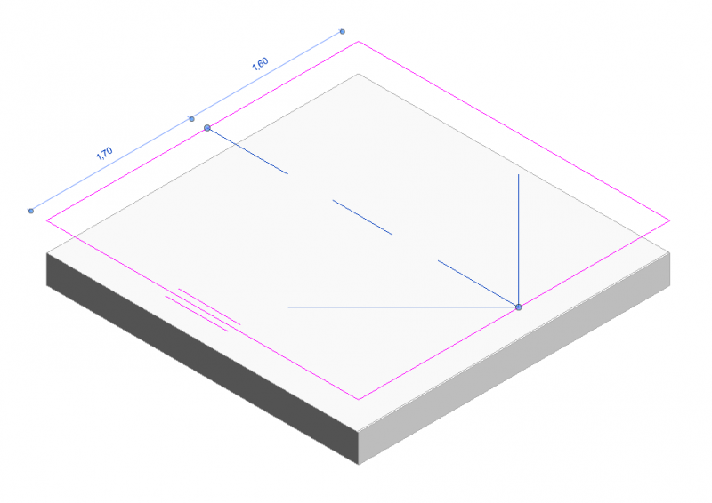 Das Modellieren der Neigung bzw. des Gefälles von Fundamentplatten ist in dieser Phase noch nicht erforderlich. Sollte dennoch eine grafische Darstellung notwendig sein, kann das mittels 2D-Elemente in Grundriss und Schnitt umgesetzt werden.