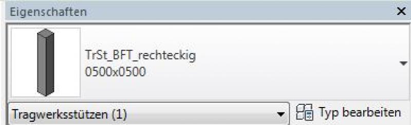 Wird ein weiterer Stützenquerschnitt benötigt, der in der Familie noch nicht enthalten ist, sollte ein neuer Typ mit dem Befehl >Typ bearbeiten und >Duplizieren erzeugt werden: