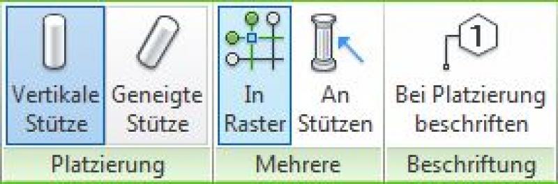 Tragwerksstützen können vertikal oder geneigt erstellt werden. Die entsprechenden Befehle sind beim Platzieren der Stütze in der Multifunktionsleiste zu finden: