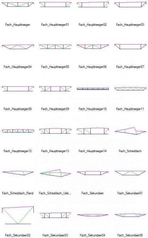 - Dabei gilt: Ein Obergurt wird immer rosa dargestellt, ein Untergurt blau, vertikale Stege schwarz, schräge Stege grün (diese Farb-Einstellung ist von Autodesk vorgegeben)