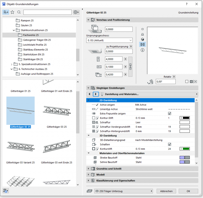 Erscheinungsbild von Fachwerkbindern im Familieneditor (nur Systemlinien):