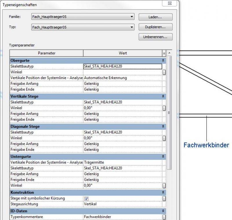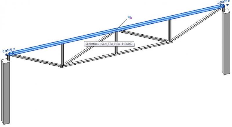 Jedoch ist das nur so lange der Fall, bis im Projekt sinnvolle Skelettbau-Familien/Typen als Fachwerkträger-Profile zugeordnet werden (meist Stahlbau-Profile; siehe Bild 2 weiter unten).