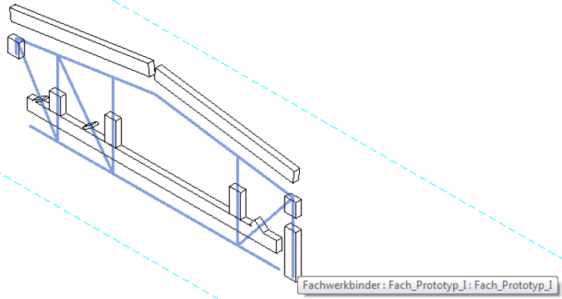 Leider werden in Revit neu eingefügte Fachwerke oftmals zunächst "gesprengt/zerrissen" dargestellt, was nat. irreführend ist und fälschlicherweise vermuten lässt, dass die Familien nicht funktionieren (siehe Bild 1 weiter unten)
