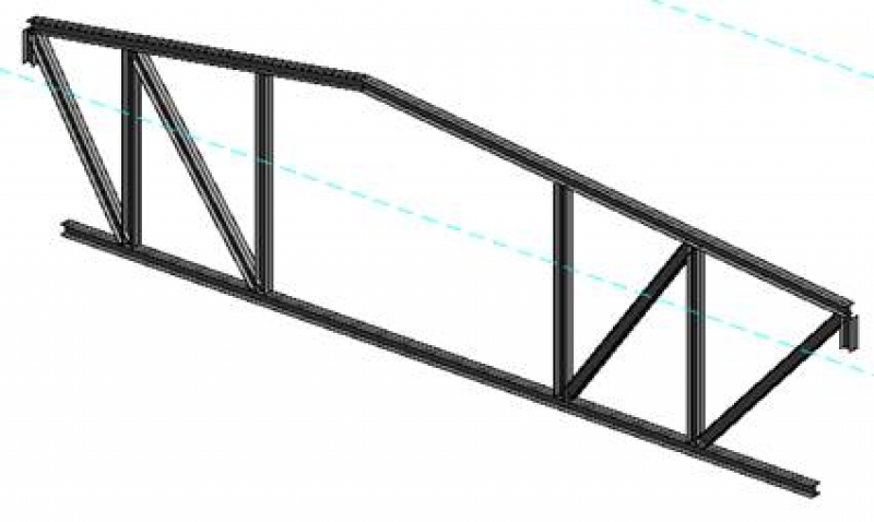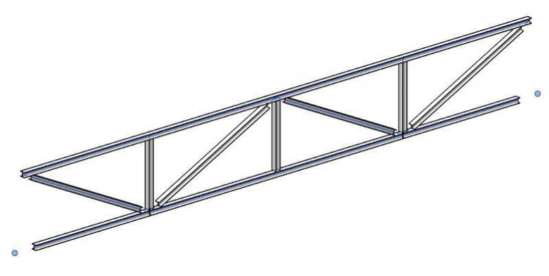 Über die Parameter >Startebenenversatz und >Endebenenversatz kann ein Fachwerk ähnlich einem Träger geneigt werden, um bspw. die Schräge einer Dachkonstruktion vorzugeben.