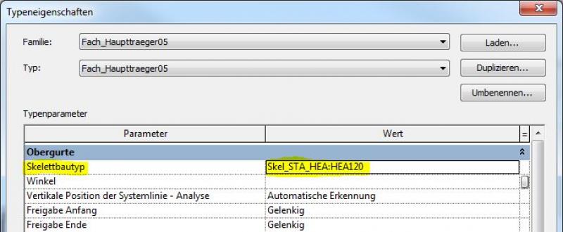 Profil-Zuordnung über >Typ bearbeiten und >Skelettbautyp: