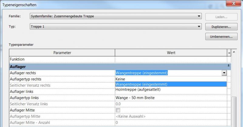 Das Auflager der Treppenkonstruktion wird in den Typeneigenschaften definiert.