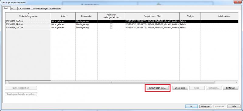 Damit die verknüpften Modelle auch wieder richtig angezeigt werden können sollten nun noch die Pfade neu verknüpft werden. Hierzu zuerst unter dem Reiter Verwalten "Verknüpfungen verwalten" öffnen.