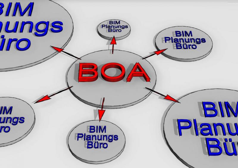 Das Leistungspaket der BIM Office Administration (= BOA) bietet eine kundenübergreifende, zentrale Verwaltung aller Prozess- und Technologie-bezogenen Themen eines BIM-Betriebs, unabhängig von Unternehmensgröße, -Standort und inhaltlicher Ausrichtung (z.B. Architekten, Tragwerksplaner, Haustechnikplaner, etc.).
