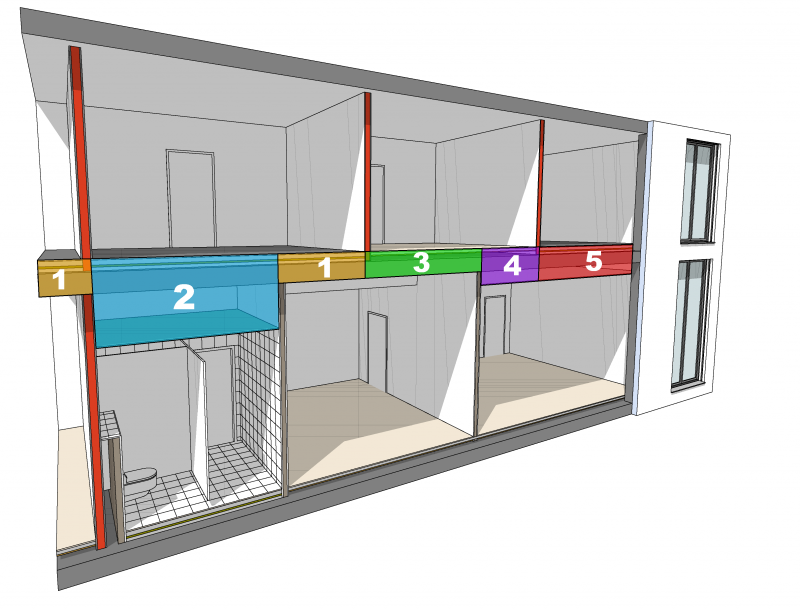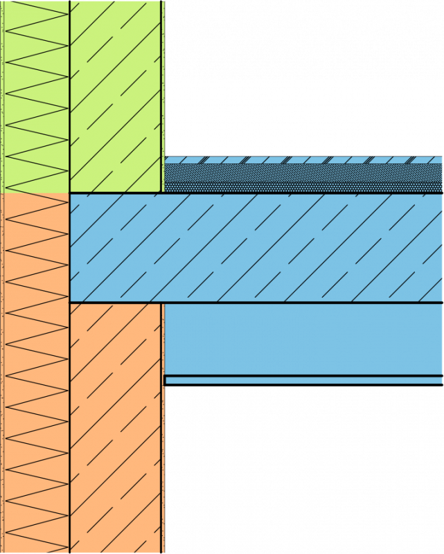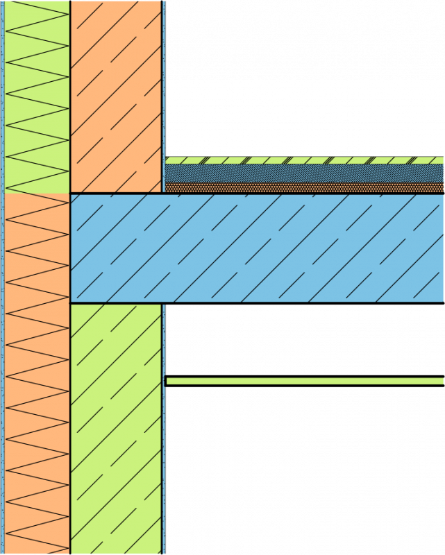 Die Abbildung illustriert einen kleinen Ausschnitt aus einem klassischen Wohnbau-Modell. Hier kommen üblicherweise sehr viele verschiedene Schichtaufbauten auf engem Raum vor: