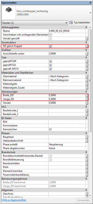 Analog zum Fenster werden in dieser Phase auch bei Lichtkuppeln die Oberflächendefinitionen und bauphysikalischen Eigenschaften vom Fachbereich Architektur eingebracht.
