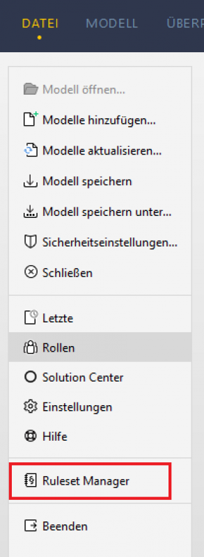 Ähnlich wie die Klassifikation sind die Rulesets bereits im Template enthalten. Wenn es notwendig ist, können neue über den Ruleset-Manager erstellt werden.