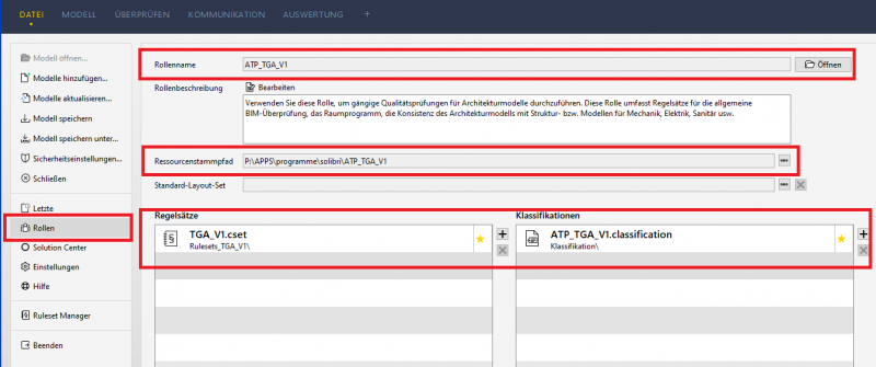 Um die ATP-TGA Rolle zu verwenden, klicken Sie im Startmenü auf den Reiter Rollen. Im ausgewählten Feld kann ein Dateipfad angegeben werden, wo alle Rulesets und Klassifikationen hochgeladen werden (Ressourcendateien die Templates).