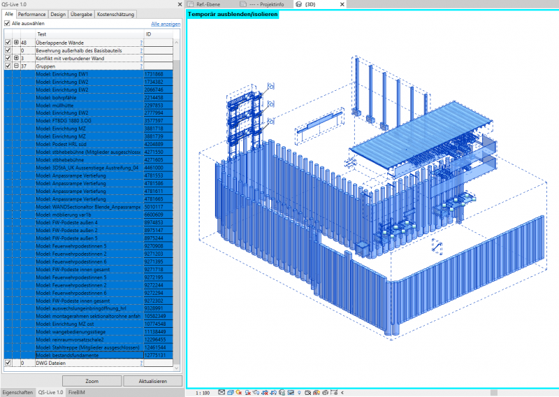 Durch QS Live, einem Revit-Addin zur gezielten Fehlersuche, können Sie fehlerhafte Elemente isolieren und diese sofort korrigieren.