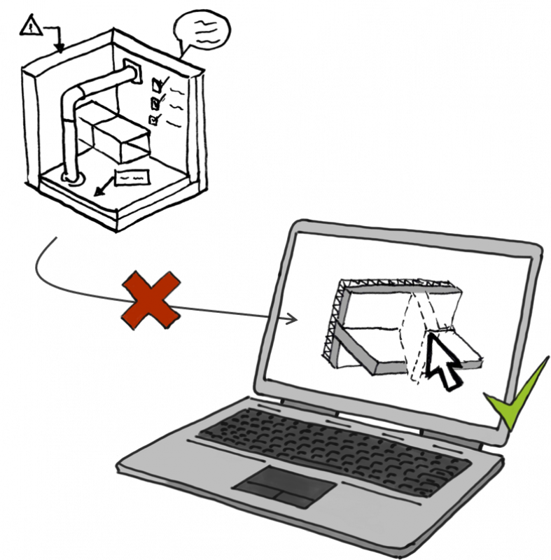 Qualitätssicherung in BIM kann lange Prozessketten bedeuten: Vor allem, wenn externe Prüfprogramme wie Navisworks oder Solibri zur Prüfung genutzt werden, gestaltet sich die Kommunikation von hier gefundenen Fehlern sehr aufwändig: Das Modell muss zunächst exportiert und dann geprüft werden, anschließend müssen die gefundenen Fehler in Form von BCF-Kommentaren zurück in Revit importiert werden.