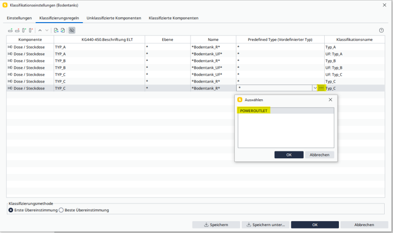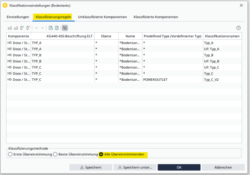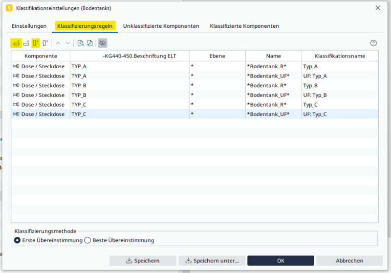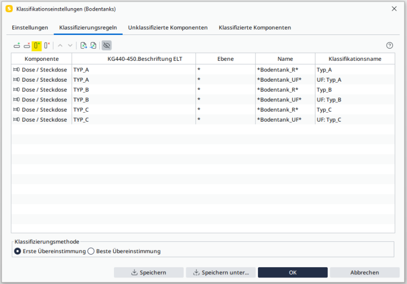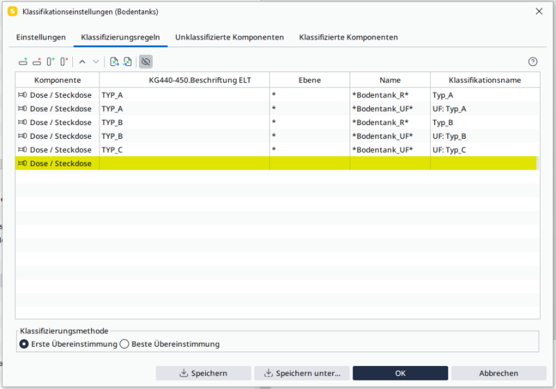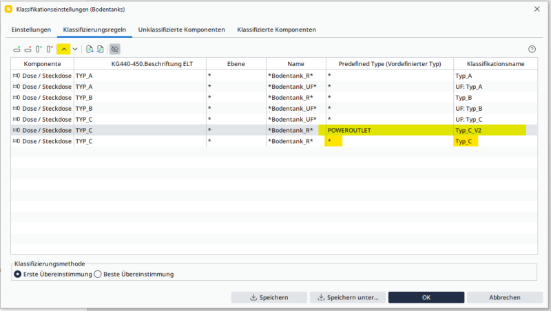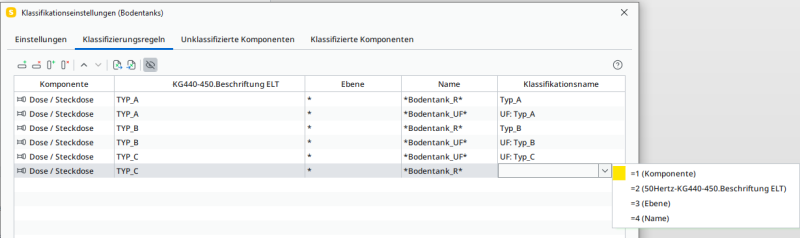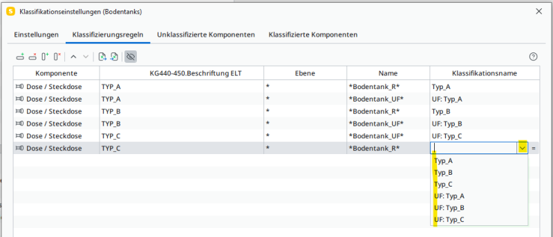 Als Nächstes wechseln wir zum Reiter Klassifikationsregeln. In diesem Bereich definieren wir die Regeln, anhand derer eine Komponente der gewünschten Klasse zugeordnet wird.