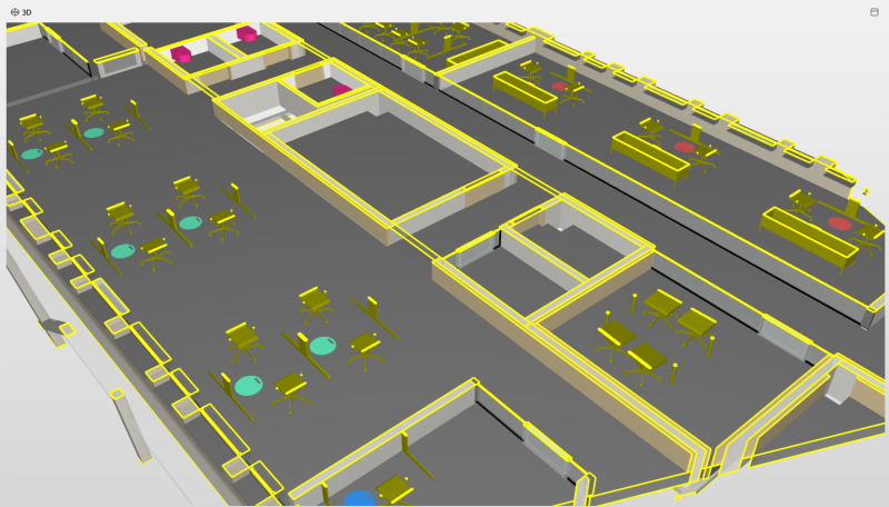 Bild: Grafische Überschreibung der Brandschutzinformationen in Solibri.