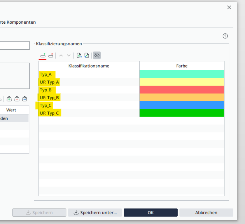 Bitte beachten Sie dabei stets, wofür die jeweilige Klassifikation verwendet werden soll – es ist nicht in allen Fällen sinnvoll, nicht klassifizierte Elemente mit den klassifizierten zu mischen. Dennoch kann es hilfreich sein, um zu überprüfen, ob die Klassifikation korrekt funktioniert und keine Komponenten versehentlich ausgelassen wurden.