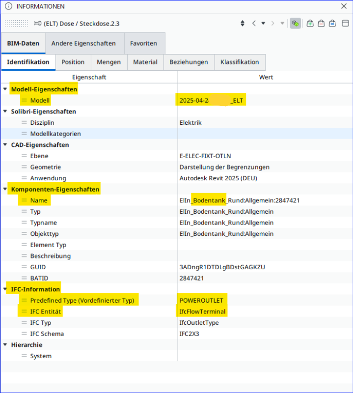Solibri stellt uns neben den IFC-Eigenschaften auch Koordinaten, Positionen, Modellnamen und viele weitere Informationen zur Verfügung.