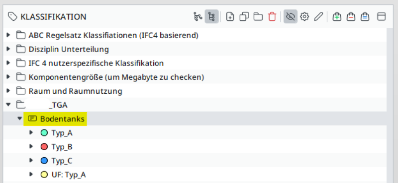 Auf dem folgenden Screenshot verwenden wir eine spezielle, vom Nutzer erstellte Information zur genauen Identifikation des Bodentank-Typs. Dabei handelt es sich nicht um eine standardmäßige IFC-Eigenschaft, sondern um ein projektspezifisch definiertes Attribut.