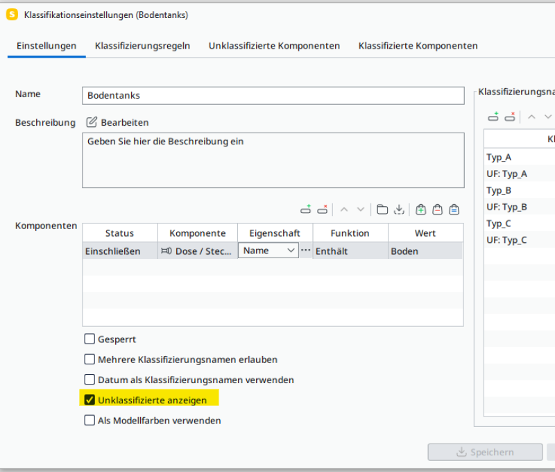 Wenn Sie die sogenannten nicht klassifizierten Komponenten gemeinsam mit den klassifizierten Elementen anzeigen möchten, aktivieren Sie bitte die folgenden Kontrollkästchen.